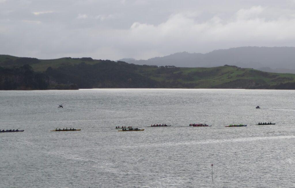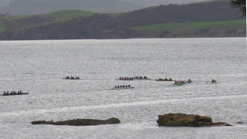 The 2023 Whaingaroa Hoe held on Saturday 7th May had 114 waka taking part with 663 paddlers. After the Karakia at 8am, the first 8km race got underway at 9am. The races start off the launching ramp in the Opotoru Estuary and finish in the same location.