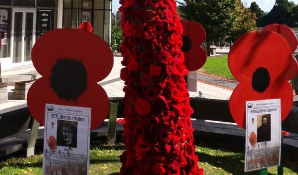 Community groups in Raglan and across the Waikato district are decorating trees with thousands of red knitted poppies in a district-wide ‘yarn bombing’ street