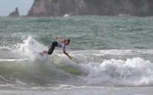 On day 2, Willoughby claimed his first win in the Under 16 Boys Division after being the form surfer all weekend. He posted a 15.3 point heat total which included an 8.43 point ride in the final. Current rankings leader Tom Butland (Tara) racked up another runner up finish in the final with Kora Cooper (Rag) finishing in third and Tom Robinson (Whngrei) finishing in fourth.