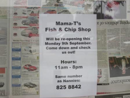 Now another window sign announces that the shop will reopen on Monday and be known as Mama-T’s Fish & Chip Shop. It will be open from 11am to 8pm daily. So something new to check out in Bow St.