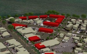 The proposed Raglan Structure Plan refers to a Raglan CBD blueprint (Paragraphs 15B.4.3 e & 15B.5.3). The blueprint was produced last December by Kevin Brewer, a Newmarket based planner (Brewer Davidson). The above graphic is is one of the illustrations from that Raglan CBD Urban Design Framework showing the extent of Council’s concept for the extended CBD.