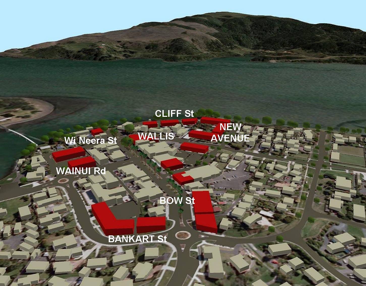 The proposed Raglan Structure Plan refers to a Raglan CBD blueprint (Paragraphs 15B.4.3 e & 15B.5.3). The blueprint was produced last December by Kevin Brewer, a Newmarket based planner (Brewer Davidson). The above graphic is is one of the illustrations from that Raglan CBD Urban Design Framework showing the extent of Council’s concept for the extended CBD.
