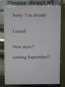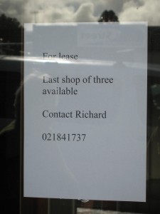 Two small signs in the window of the former Herbal Dispensary shop and the former Lugton Real Estate agency proclaim the future of these shops in Bow Street, Raglan. One sign says that the former Lugton Real Estate agency and the southern half of the former Herbal Dispensary shop will be the home of a new shop that will open in September. The other signs says that the northern half of the former Herbal Dispensary shop is available for lease and if you want it to contact Richard 021 841 737. And it seems that the Richard is Richard Jacobson, owner of Raglan’s very successful Four Square supermarket. It is expected that the new store will be a hardware shop.