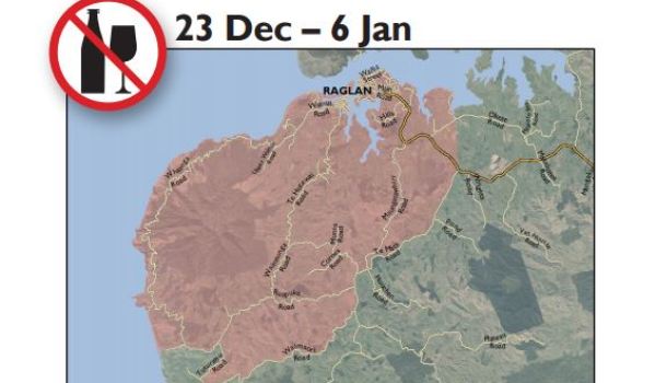 However, in Raglan over the busy summer period the usual central township ’no liquor’ area is extended to a large surrounding area from 23 December to 6 January.