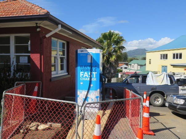 Work on the charger began during the week. It is now in place but still has to be connected. WEL Networks is paying for the charger. The charger will be free to use with the power paid for by WEL Networks. Waikato District Council has provided the site for the charger and parking spaces.