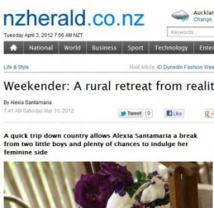 A quick trip down country allowed NZ Herald reporter Alexia Santamaria a break from two little boys and plenty of chances to indulge her feminine side. Leaving Auckland on Saturday she stopped first in Mercer and Te Kauwhata before staying the night at Foxgloves B & B near Waingaro.