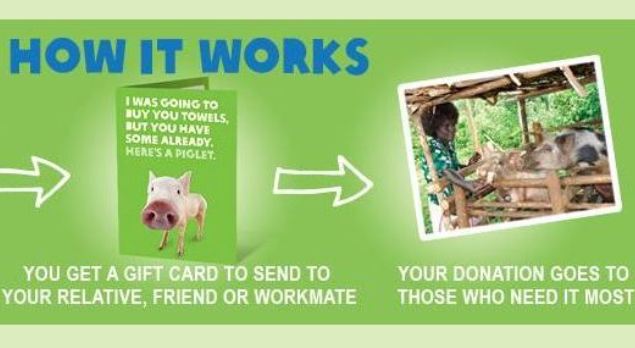 Kiwis can choose a gift for their loved one from a catalogue of items needed in developing communities – the donation goes towards the people in those communities and their loved one receives a card describing the gift and the difference it will make.