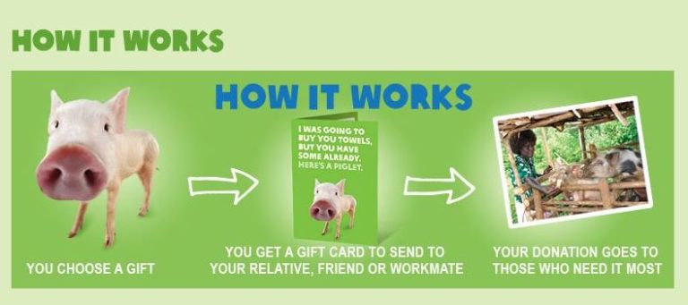 Kiwis can choose a gift for their loved one from a catalogue of items needed in developing communities – the donation goes towards the people in those communities and their loved one receives a card describing the gift and the difference it will make.