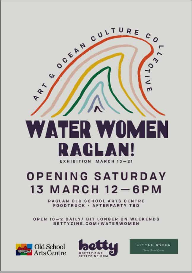 Betty Zine is bringing their Water Women exhibition (refreshed and revised!) to Raglan for two weeks, so it’s your chance to see the work of these talented wāhine. Betty Zine is a space for lady sliders to come together in creative pursuits. They are a community of women from all waves of life, brought together by a shared love for the sea as a source of inspiration, joy and wonder.