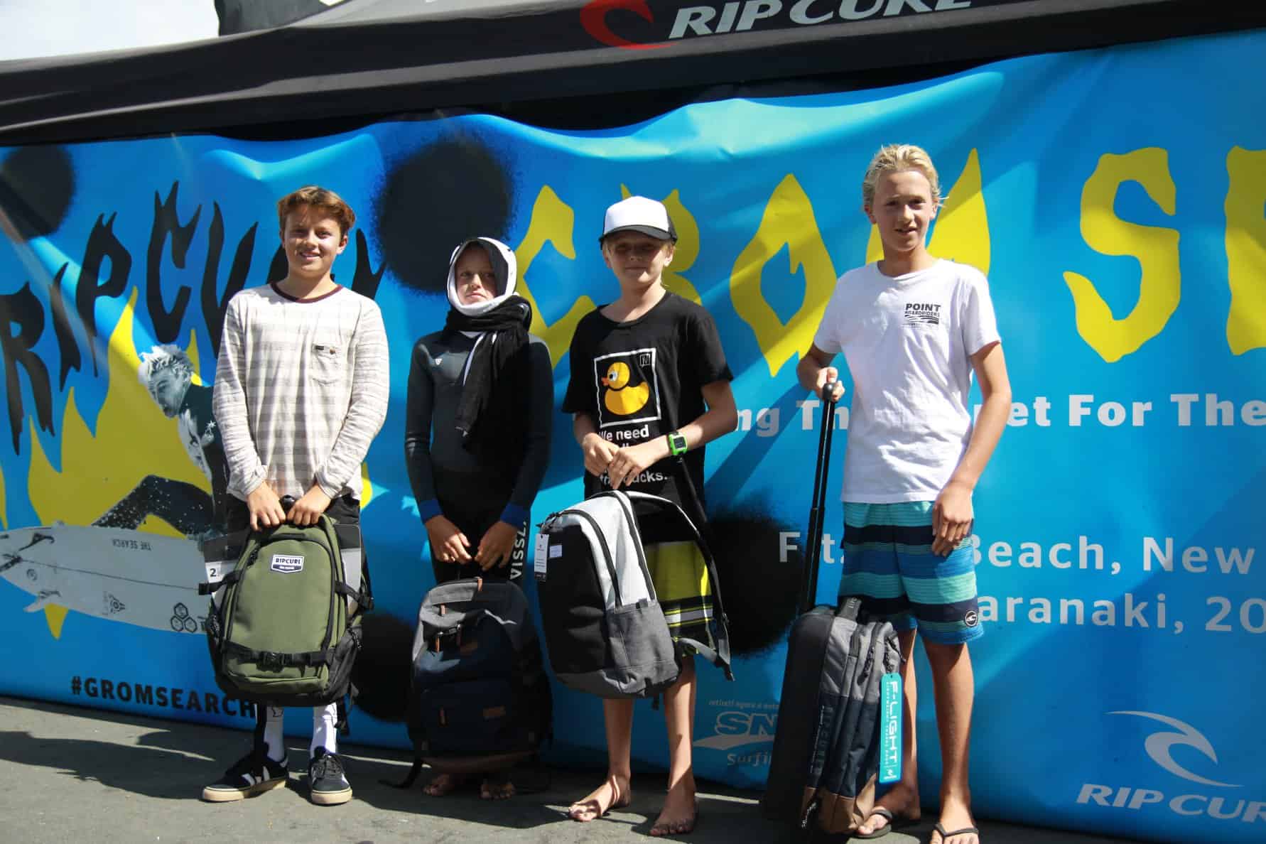 Young Raglan surfers continued their winning streak at the Rip Curl GromSearch held at Back Beach in Taranaki over the weekend of 3-4 March 2018.