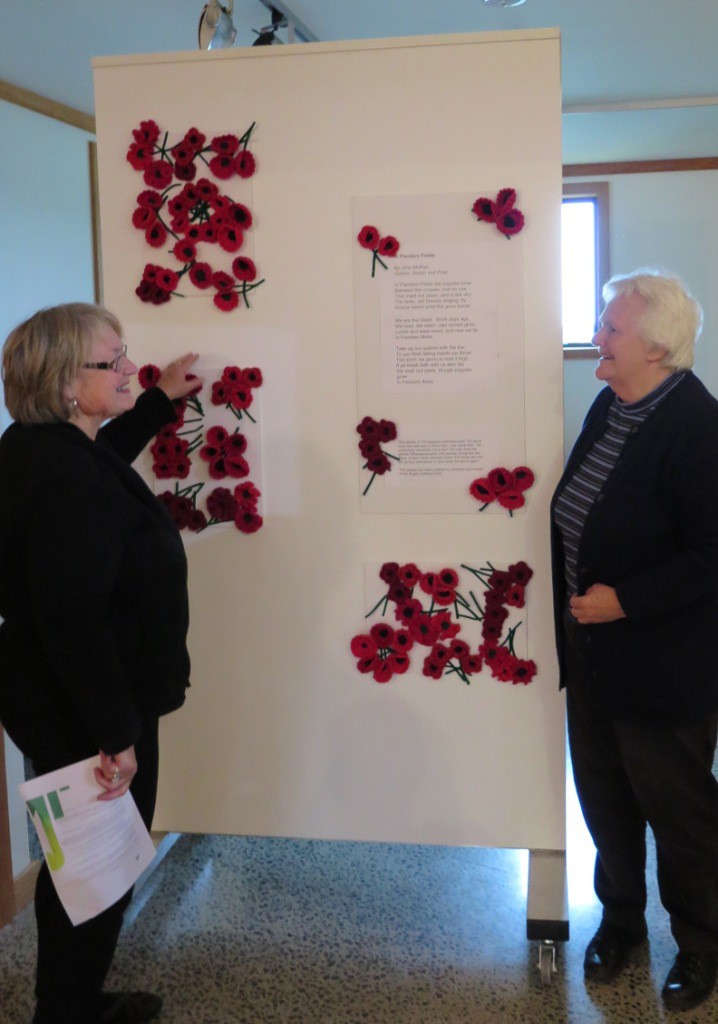 The idea for knitting the poppies came from an article in Auto Age magazine about a group in Auckland that was knitting poppies for a display in Auckland. Our local knitters decided they could get knitting for the Raglan Museum. The committee of the Museum Society agreed and the result is the exhibit that forms the first part of the Museum’s WW1 exhibition. The main part of the exhibit will open in 2015.