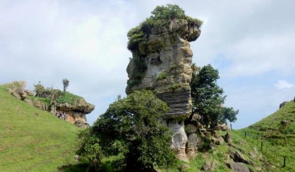 The large stack, in the photo with the ‘Hobbit’ caves behind it, are in the 28m year old Orahiri Limestone. This fairly short walk also goes to the edge of the large Toreparu wetland – bring lunch.