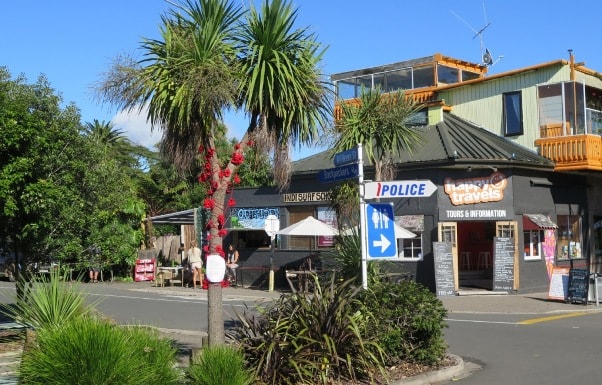 Poppies blossomed after Easter on the cabbage tree at the corner of Bow and Wi Neera Streets. The yarn bombing was done by members of the Raglan knitting group who have been making the poppies during their Wednesday sessions at Orca restaurant. The red knitted poppies are a street art project to commemorate ANZAC Day on 25th April.