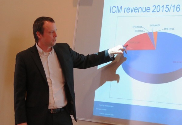 The meeting started with Mathew Davis from the WRC explaining, with some very poor unreadable PowerPoint charts, that most Regional Council expenditure goes on running buses with relatively a small amount spent on Integrated Catchment Management. He went on to show some maps identifying priority areas across the region that needed attention.