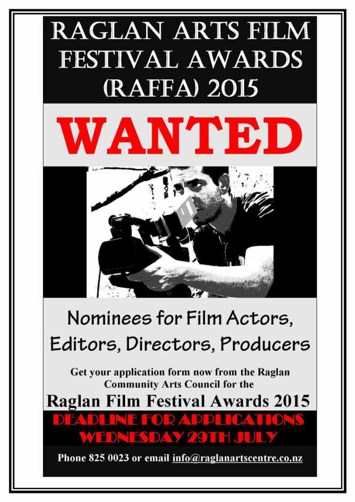 Raglan Film Festival is seeking nominations for the 2015 RAFFA Awards.