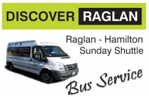 The Discover Raglan Sunday Mini-Bus organised by the Raglan Chamber of Commerce will start running twice a day on every Sunday and public holiday from 7th April 2013. This Raglan – Hamilton service replaces the limited summer Sunday service provided by Busit. The bus has been made possible through a grant from the Waikato District Council to cover the shortfall expected between passenger fares and operating costs.