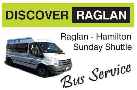 The Discover Raglan Sunday & Public Holiday Bus is brought to you by Raglan Chamber of Commerce Waikato District Council and the Raglan Community Vehicle Trust: