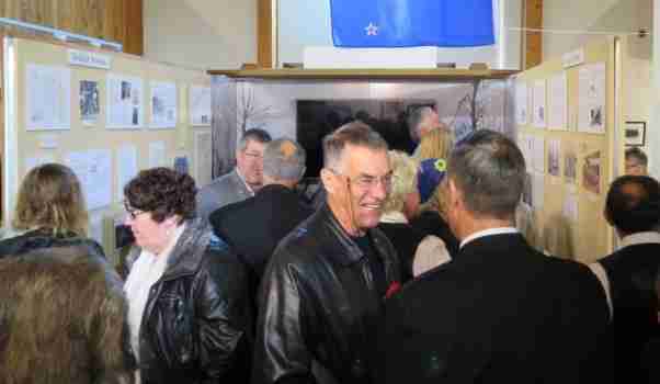 The Raglan Remembers World War One display opened this morning 10am (18.04.2015) at Raglan Museum.The opening ceremony started with a bagpipe call by Raglan piper Brett McCardle, Deidre Bourne and other members of the Raglan Highland Pipe Band to the gathering. A karanga called about 150 guests from the i-SITE into the museum. Kaumatua Sean Ellinson and Paddy Kaa along with Minister Kathleen Gavin blessed the exhibition. Ken Soanes, the Museum project leader for the exhibition, welcomed guests to the Museum and explained the background to the exhibition. Prayers were offered for the remembrance of those who have passed serving our country. The exhibition was declared open by the Mayor of Waikato District, Mr Allan Sanson. Raglan Ward Councillor Clint Baddeley attended. Morning tea was then served in the Fire Station social room.