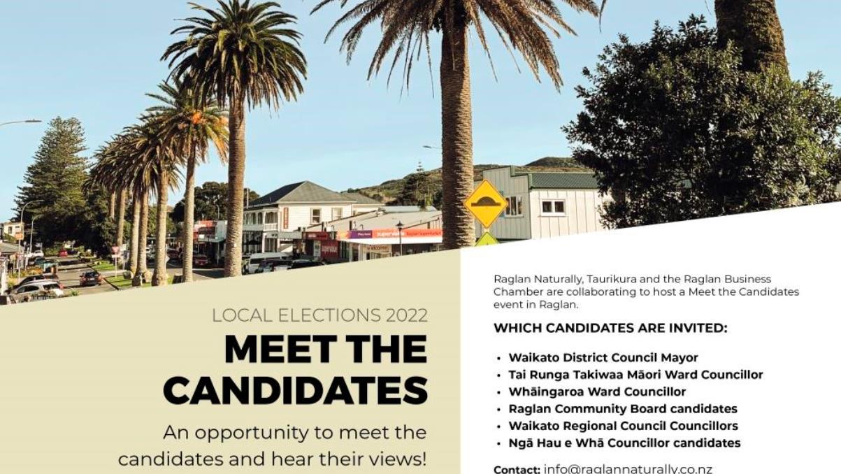 Raglan Naturally, Taurikura and the Raglan Business Chamber are collaborating to host a Meet the Candidates event in Raglan.