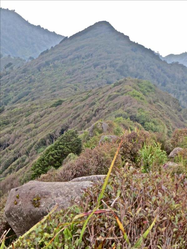 Dwarf montane bush and great views on the way up Karioi from Ruapuke Rd. Image John Lawson
