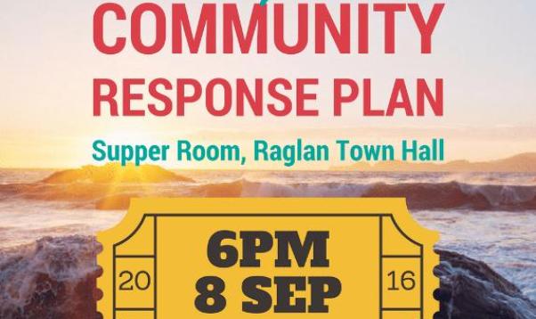 Raglan Community Response Plan: Raglan Town Hall Supper Room at 6pm on 8 September.