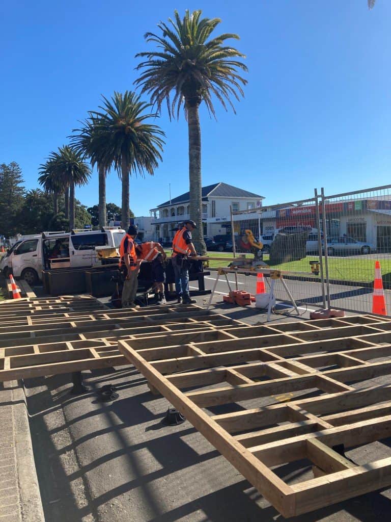 Work on the Raglan Community Board’s Places for People – He Whenua he Tangata continued overnight and today Wednesday 23rd. The Board’s installers from Christchurch CityCare have been working hard so that it can be opened by Mayor Allan Sanson on Thursday. Delayed from the 24th to 25th – now includes bike ride by Mayor around roundlet.