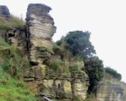 This limestone large stack has ‘Hobbit’ caves behind it. They are in 28 million year old Orahiri Limestone. They are not far from the edge of the large Toreparu wetland. Image John Lawson